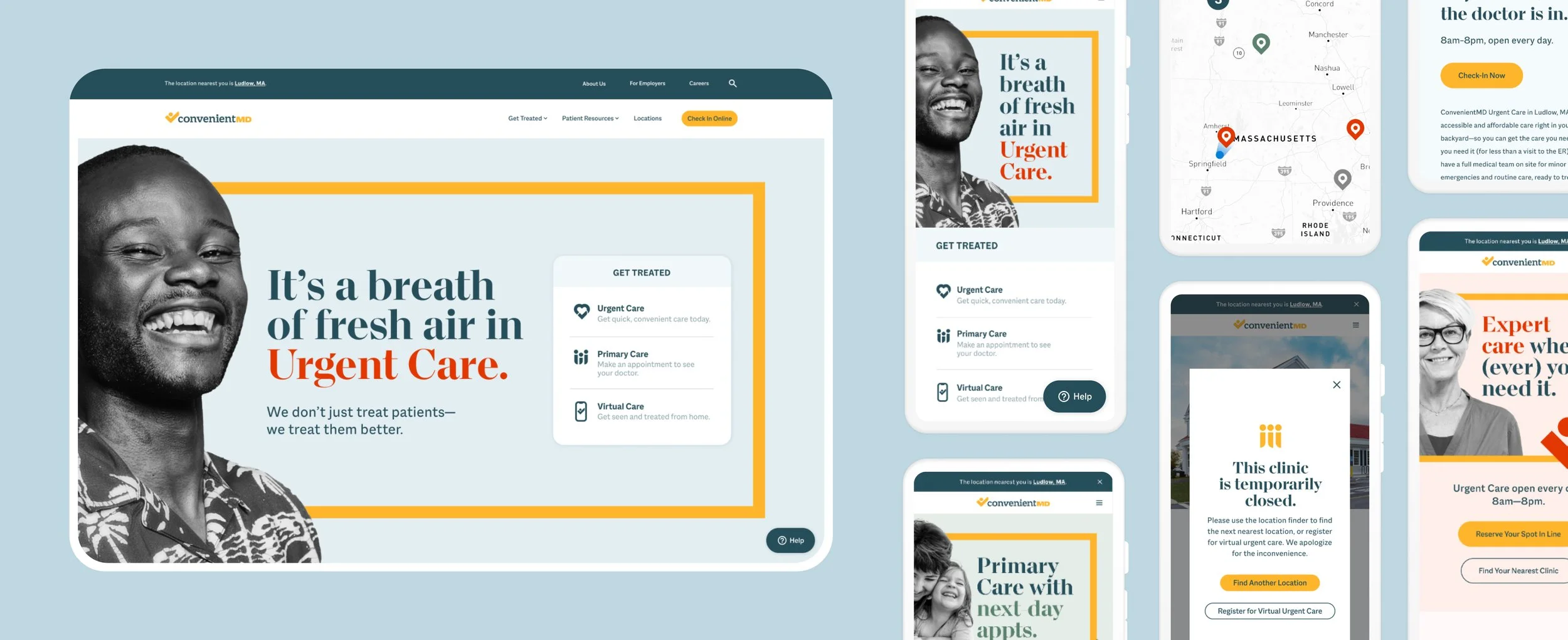 ConvenientMD Rebrand: Leading a nationwide rebrand for a New England-based healthcare provider across their website, advertising, socials, and primary care rollout.